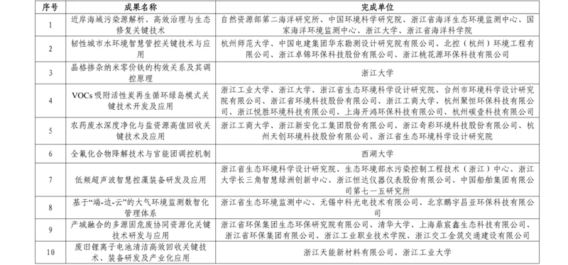 浙江省环境科学学会2025年12月2日“2025年浙江省生态环境十大科技创新”名单