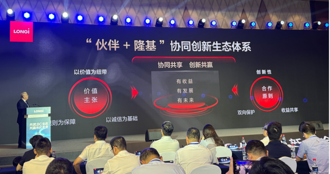 隆基自己本身希望打造的伙伴+隆基协同创新的生态体系,以价值为纽带协同共享、创新共赢,将来要有收益、发展、未来是合作的原则。