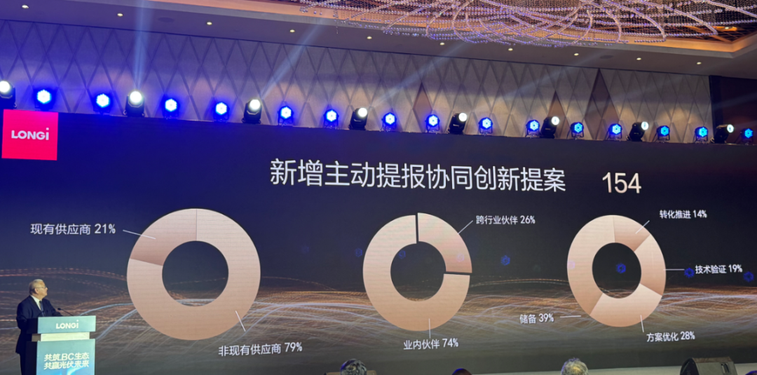 在过去这些年,我们新增主动提报协同创新的案子有154项,其中有79%不是现在的供应伙伴,业内供应商占74%,跨行业有26%。